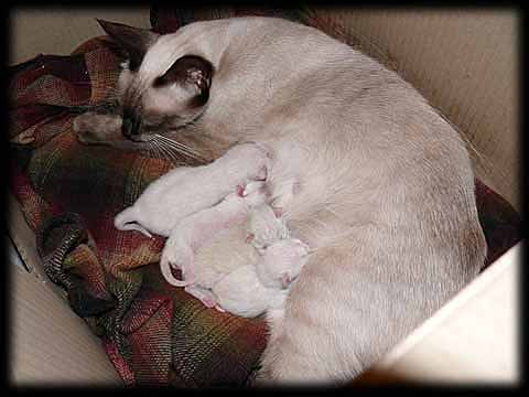 ... mais il faut que je vous dise quand même qu'ils sont sans gêne, ici par exemple c'est la place de ma sourie, il a fallu que je patiente le temps que "ça se fasse". Je pense qu'il n'y a rien de plus indécent qu'une femelle siamoise en chaleur, et comme elles les ont plus fréquement que les autres chats cela peut rapidement devenir invivable ! |