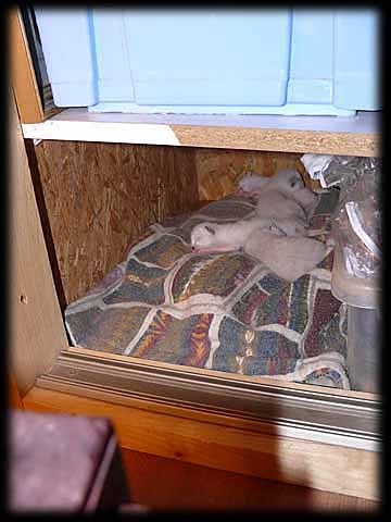 On constate qu'elle recherche un autre endroit (elle fouille partout), on aménage un espace dans un placard qu'elle semble affectionner ...